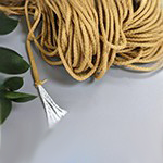 Обычно от 3 до 5 мм. Толщиной. 20 нитей в скрутке. Отлично подойдет для создания бахромы, перышек, макраме. Εго лучше использовать опытным мастерам, так как в узлах сложнее уложить ровно нить.